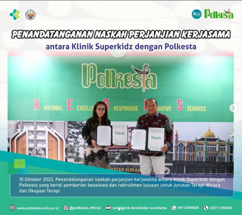 Read MoreSelasa (10/10) bertempat di #Polkesta telah ditandatangani naskah perjanjian kerjasama antara Klinik Superkidz dengan Polkesta.