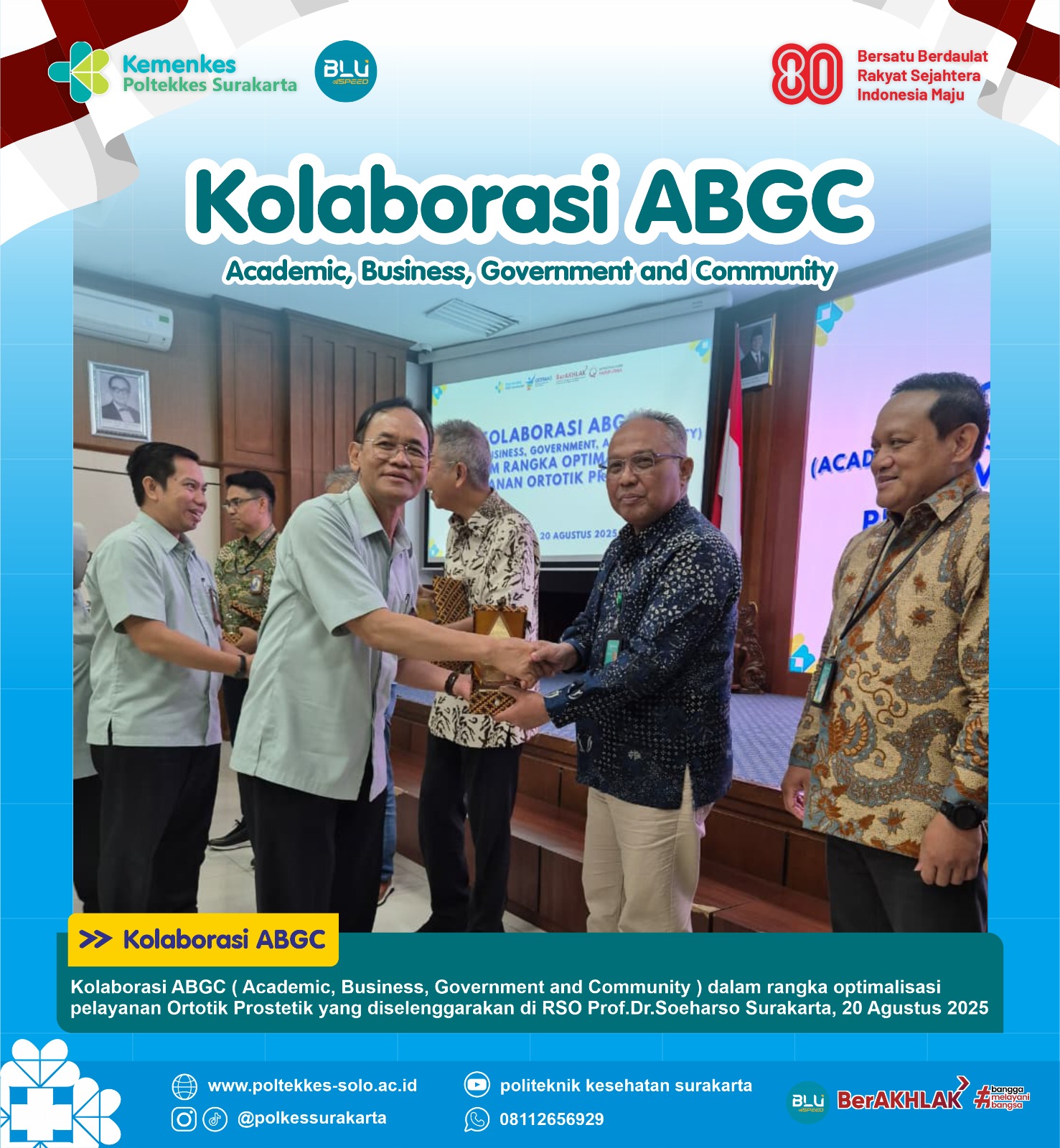 Read MoreDirektur Politeknik Kesehatan Surakarta memberikan paparan dalam kegiatan Kolaborasi ABGC ( Academic, Business, Government and Community ) dalam rangka optimalisasi pelayanan Ortotik Prostetik yang diselenggarakan di RSO Prof.