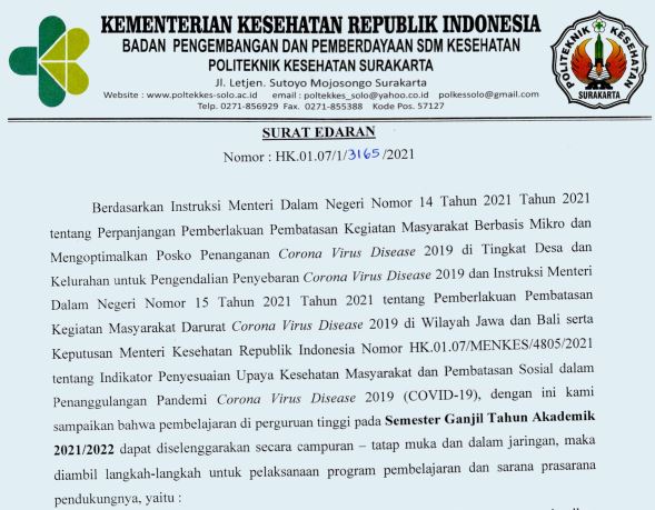 Read MoreBerikut terlampir Surat Edaran PBM Semester Ganjil Tahun Akademik 2021/2022 .