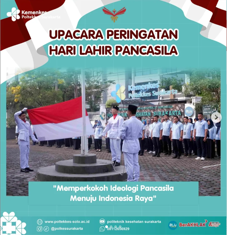 Upacara memperingati Hari Lahir Pancasila tahun 2025 "Memperkokoh Ideologi Pancasila, Menuju Indonesia Raya" #SalamSehat #Polkesta #BLUspeed #BLUuntukIndonesia #BLUberstrategipulihkanekonomi #DitjenNakes #KemenkesRI telepon : 0271 856929 WA : 08112656929 web : www.