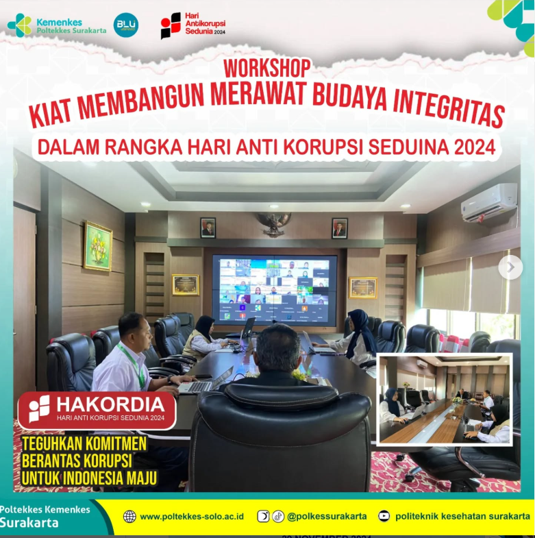 Read MoreDalam rangka memperingati Hari Anti Korupsi Sedunia tahun 2024, Poltekkes Kemenkes Surakarta menyelenggarakan Workshop dengan tema "Kiat Merawat, Membangun Budaya Integritas dalam rangka Hari Antikorupsi Dunia 2024”.