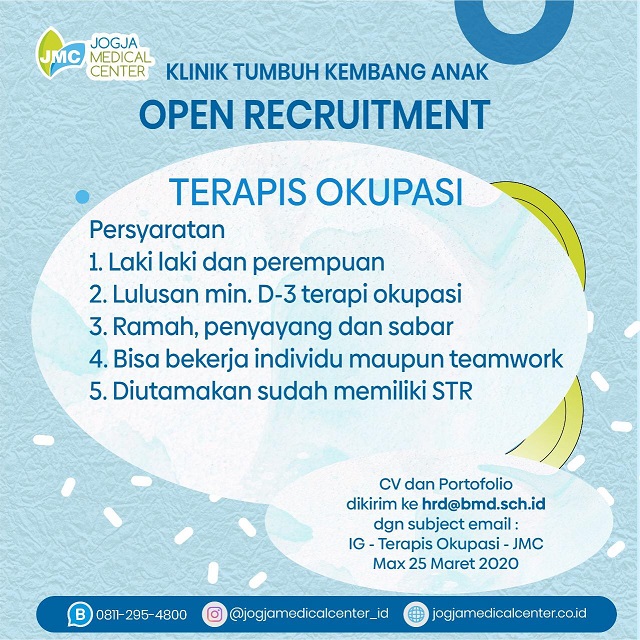 Read MoreLowongan Pekerjaan Jogja Medical Center Klinik Tumbuh Kembang Anak : .