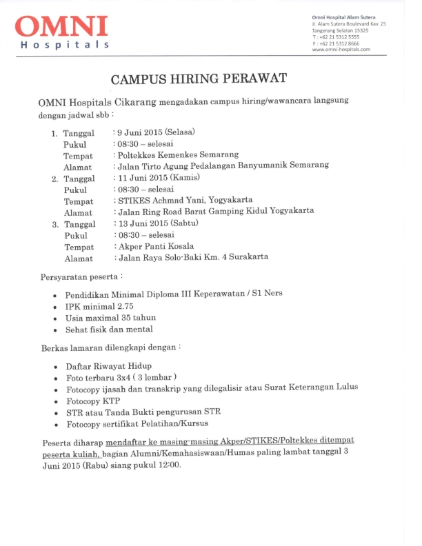 CAMPUS HIRING PERAWAT OMNI HOSPITALS CIKARANG
