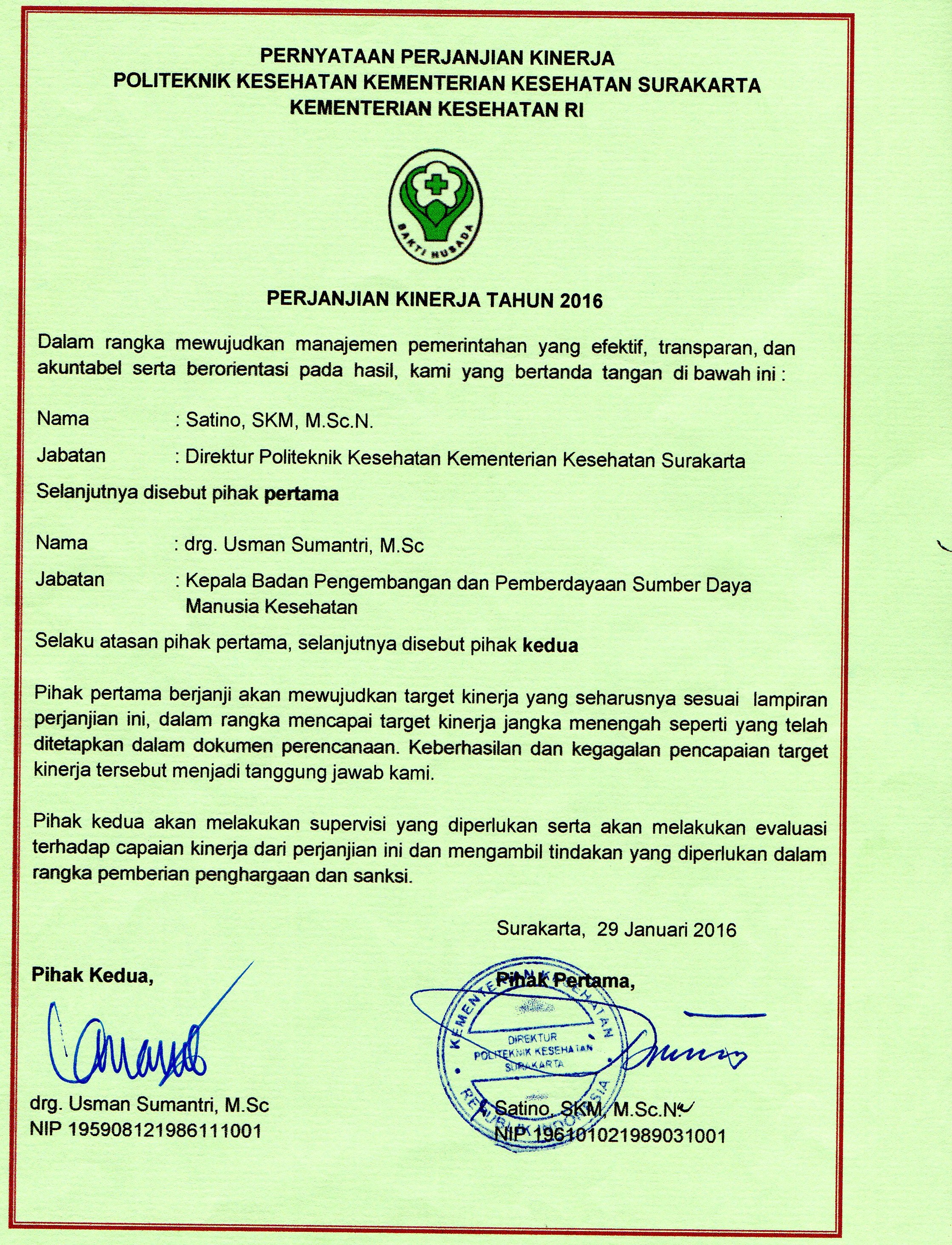 PERJANJIAN KINERJA POLTEKKES SURAKARTA TH 2016