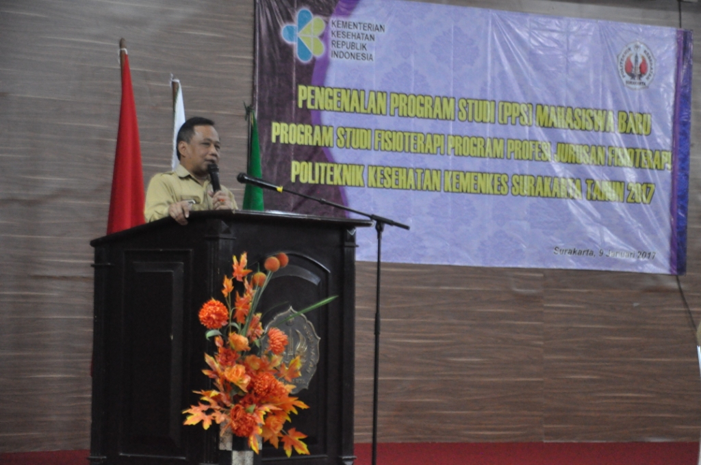 Pada hari Senin tanggal 9 Januari 2017 bertempat di Gedung Bale Krida Husada Politeknik Kesehatan Kemenkes Surakarta diadakan kegiatan pembukaan Pengenalan Program Studi (PPS) bagi mahasiswa baru Program Studi Profesi Fisioterapi. Kegiatan dibuka dengan laporan dari Pembantu Direktur III sebagai penanggungjawab sipenmaru, dilanjutkan arahan sekaligus membuka kegiatan PPS secara resmi oleh Bapak Satino, SKM, MScN selaku Direktur. Pemakaian jas almamater secara simbolis dan ucap janji mahasiswa baru prodi profesi Fisioterapi menjadi penutup acara sekaligus diserahterimakan oleh Direktur kepada Ketua Jurusan Fisioterapi.