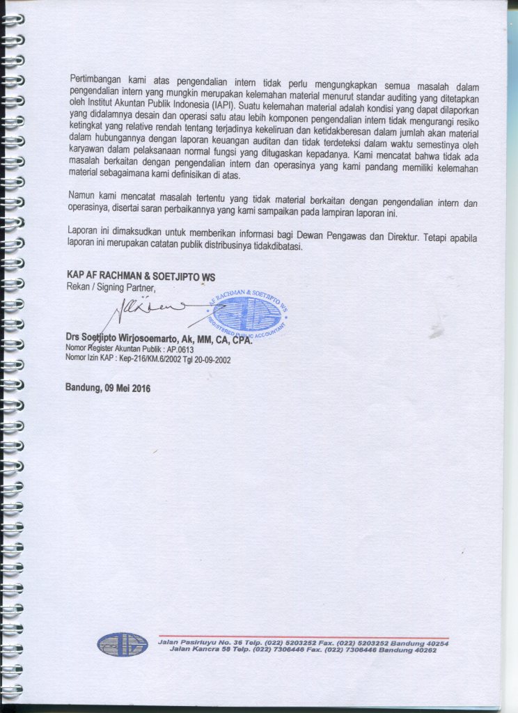 Laporan Auditor Independen Atas Kepatuhan terhadap Perundang-Undangan dan Pengendalian Intern Badan Layanan Umum (BLU) Poltekkes Kemenkes Surakarta Tahun 2015
