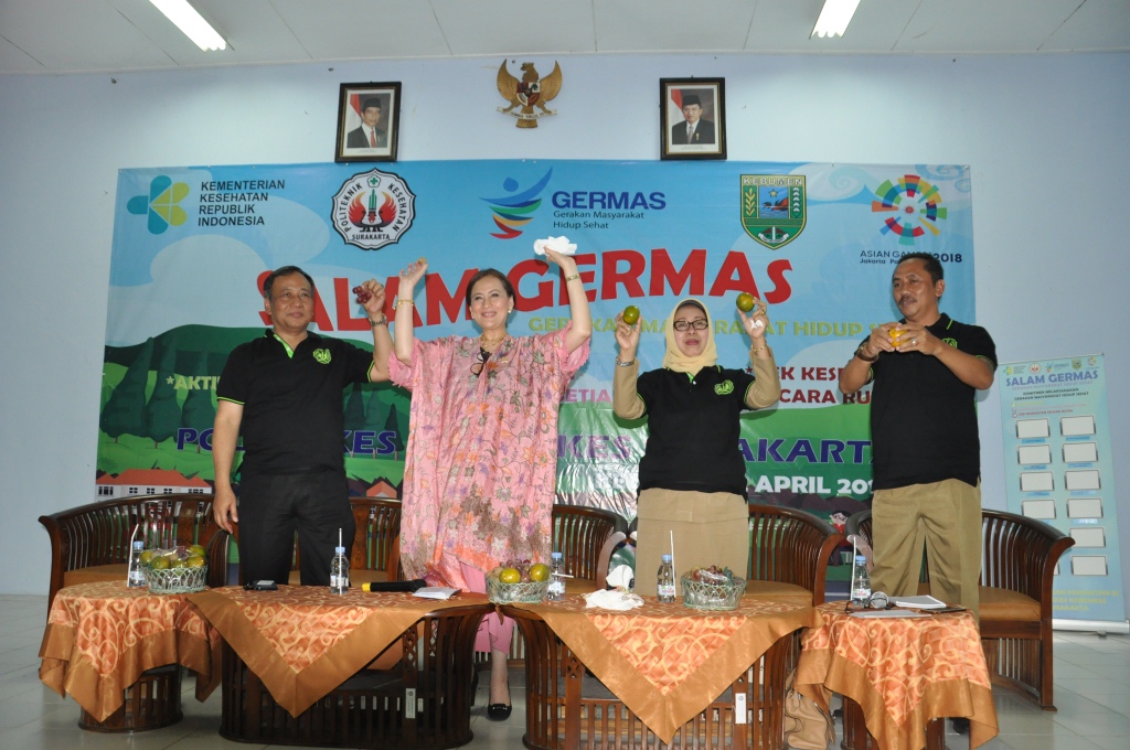 Dimulai dari pukul 08.00 s.d 14.00 WIB, tujuan dari kegiatan tersebut adalah sosialisasi untuk masyarakat Terkait hidup sehat yang dapat lakukan dengan aktivitas fisik, makan buah dan sayuran. Dalam event tersebut diawali dengan Senam Germas lalu Laporan Ketua Panitia oleh Wakil Direktur 1 Poltekkes Surakarta dilanjutkan dengan Sambutan dan Pembukaan dari Direktur Poltekkes Surakarta. Masuk dalam acara inti yaitu Talkshow, yang pertama tentang Pengawasan Kegiatan Germas yang dijsampaikan oleh Amelia Anggraini (Anggota DPR Komisi IX), dilanjutkan dengan Talk Show tentang Gerakan Masyarakat Hidup Sehat yang disampaikan oleh dr. Hj. Y. Rini Kristiani, M.Kes sebagai Kepala Dinas Kesehatan Kabupaten Kebumen beserta Kusbiyantoro, S.KM.,M.Kes selaku Kabid. Kesehatan Masyarakat.