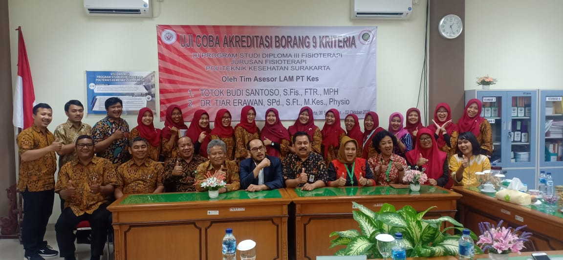 Pada tanggal 30 September - 02 Oktober 2019 dilaksanakan Visitasi Akreditasi Borang 9 Kriteria di Program Studi Diploma III Fisioterapi oleh Asesor LAM PT Kes