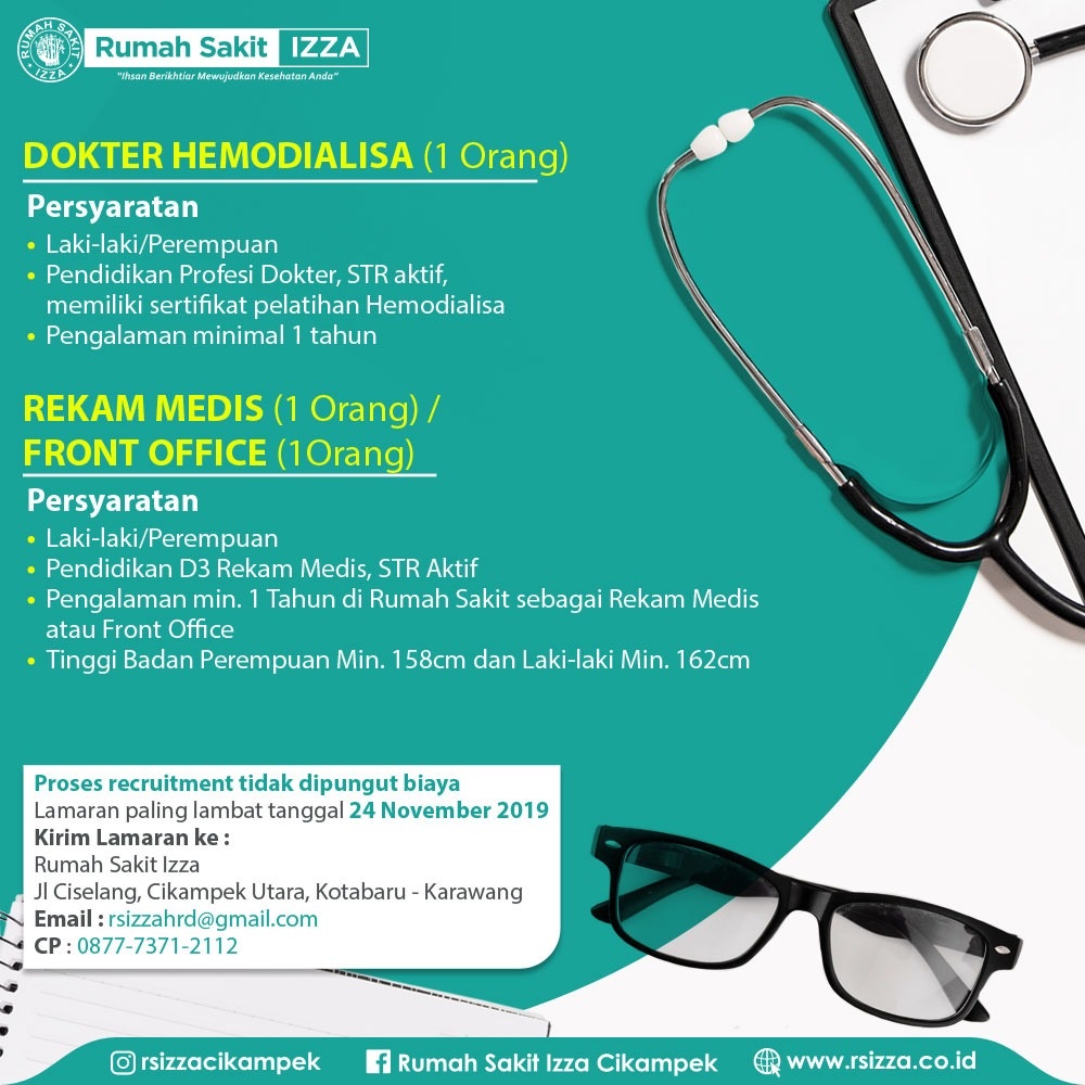 Keterangan lebih lanjut silahkan menghubungi HRD RS IZZA Cikampek