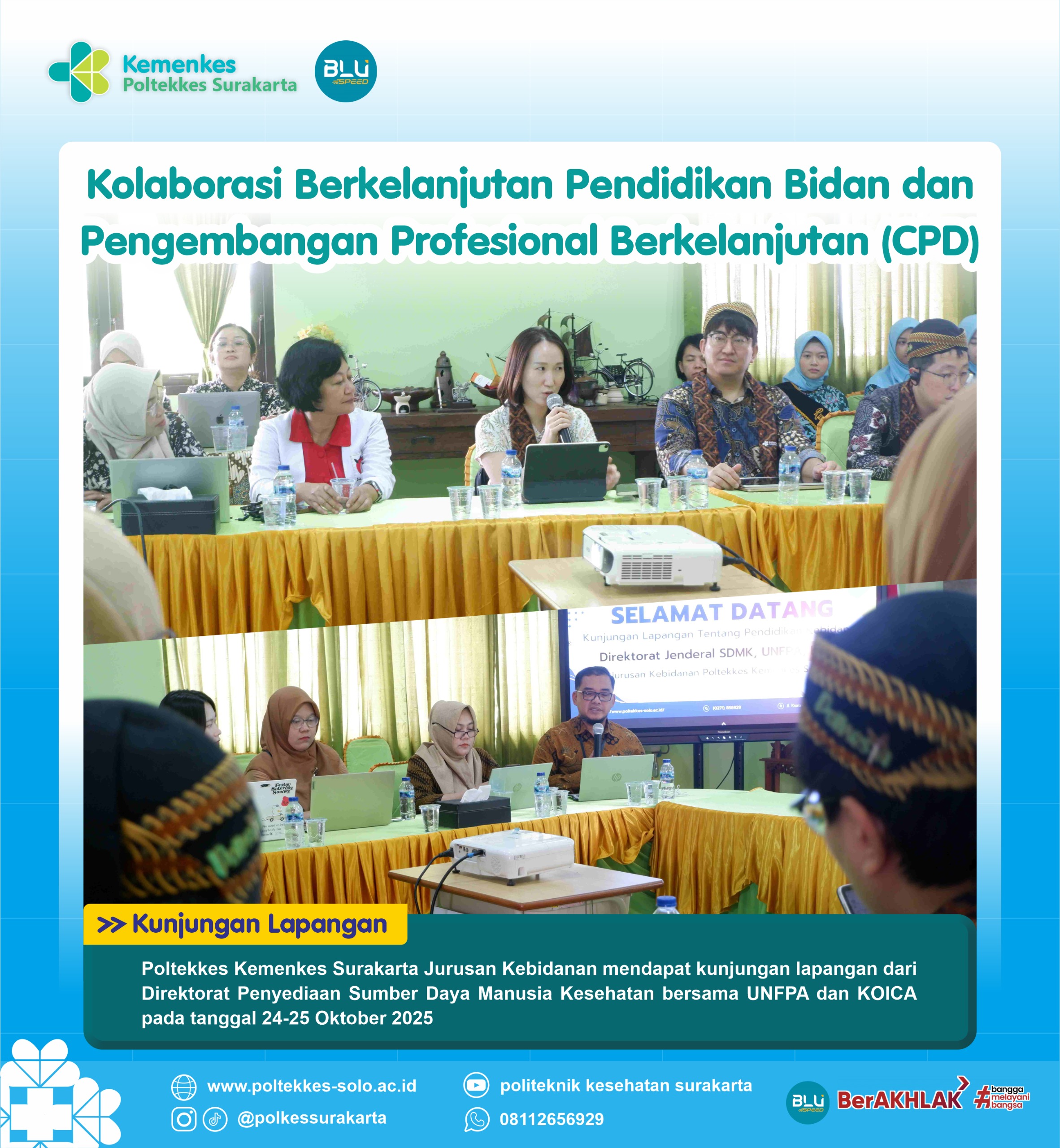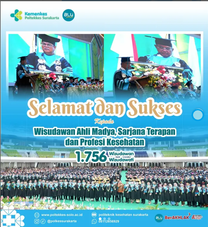 Kepada seluruh Civitas Akademika Polkesta. Di moment Dies Natalis Poltekkes Surakarta ke 19 Tahun 2020 ini, mari kita sejenak bersama sama berdoa dan memohon kepada Tuhan YME, agar wabah Covid-19 yang melanda Indonesia ini segera berakhir dan pergi dari Indonesia tercinta.
