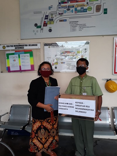 Penyerahan Bantuan Alat Pelindung Diri dari Polkesta ke RSU Muhammadiyah Delanggu. Diwakili oleh Ketua Jurusan Kebidanan dan diterima oleh Direktur RSU Muhammadiyah Delanggu. Bantuan ini diserahkan bertepatan dengan hari Kartini, 21 April 2020. Bantuan ini diserahkan dalam rangka Polkesta Peduli untuk Pencegahan Penyebaran Covid 19.