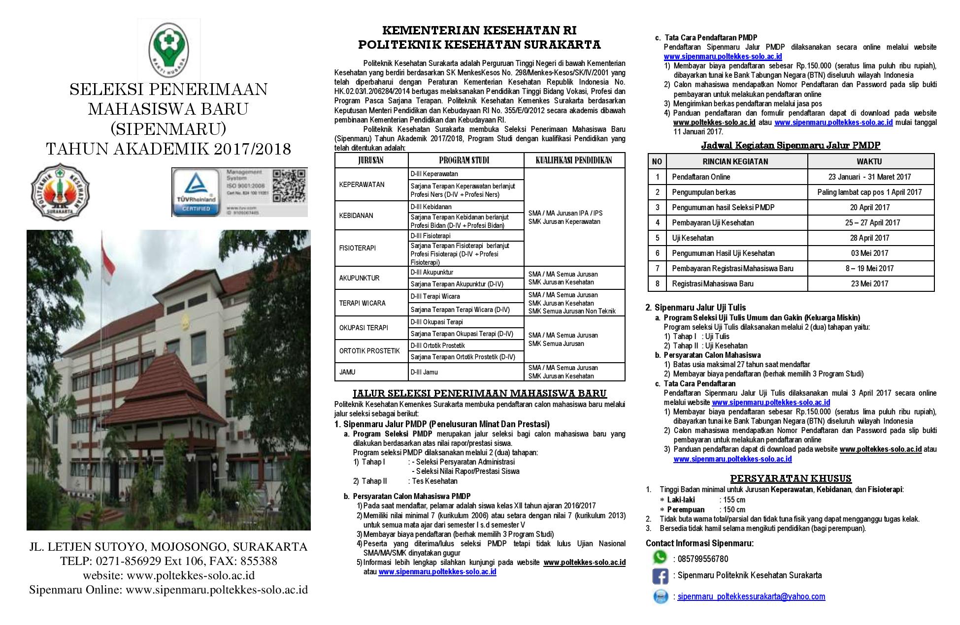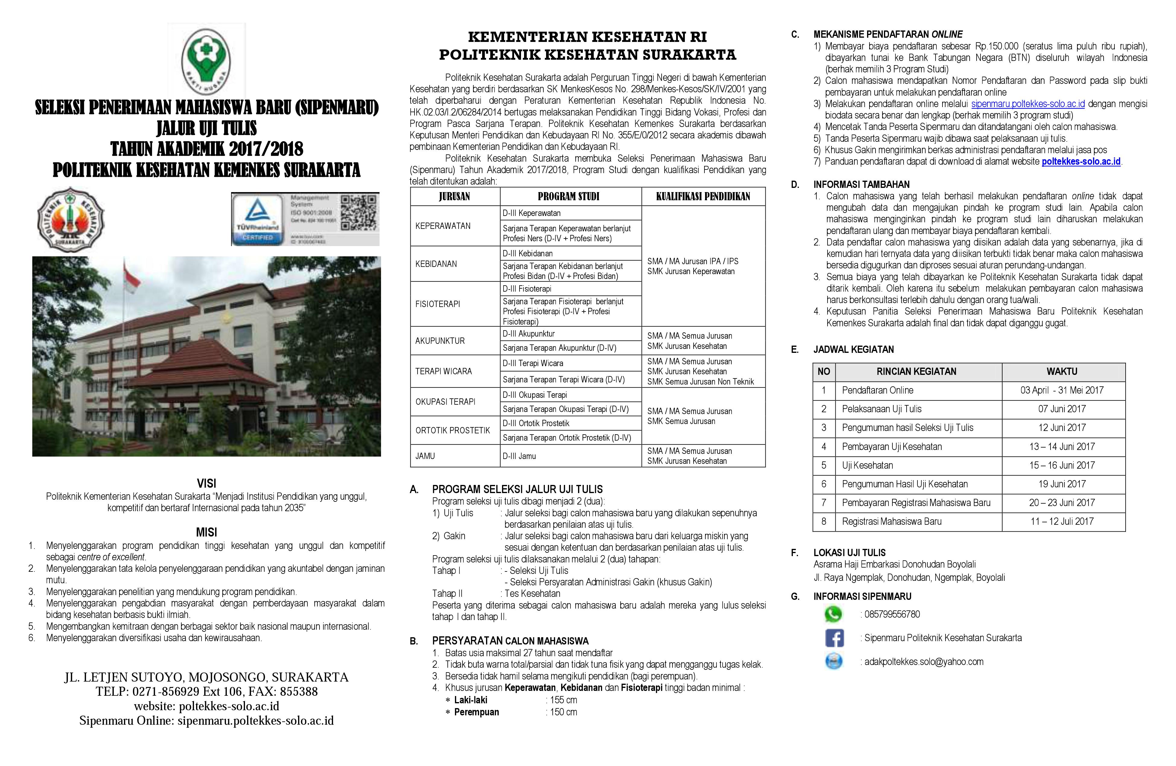 Read MoreInformasi mengenai pelaksanaan uji tulis Sipenmaru tahun 2016 bisa didownload file dibawah ini.