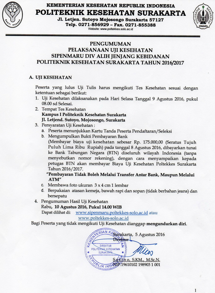 Read MoreUji kesehatan akan dilaksanakan hari Selasa 21 Juni 2016 dan Rabu 22 Juni 2016.